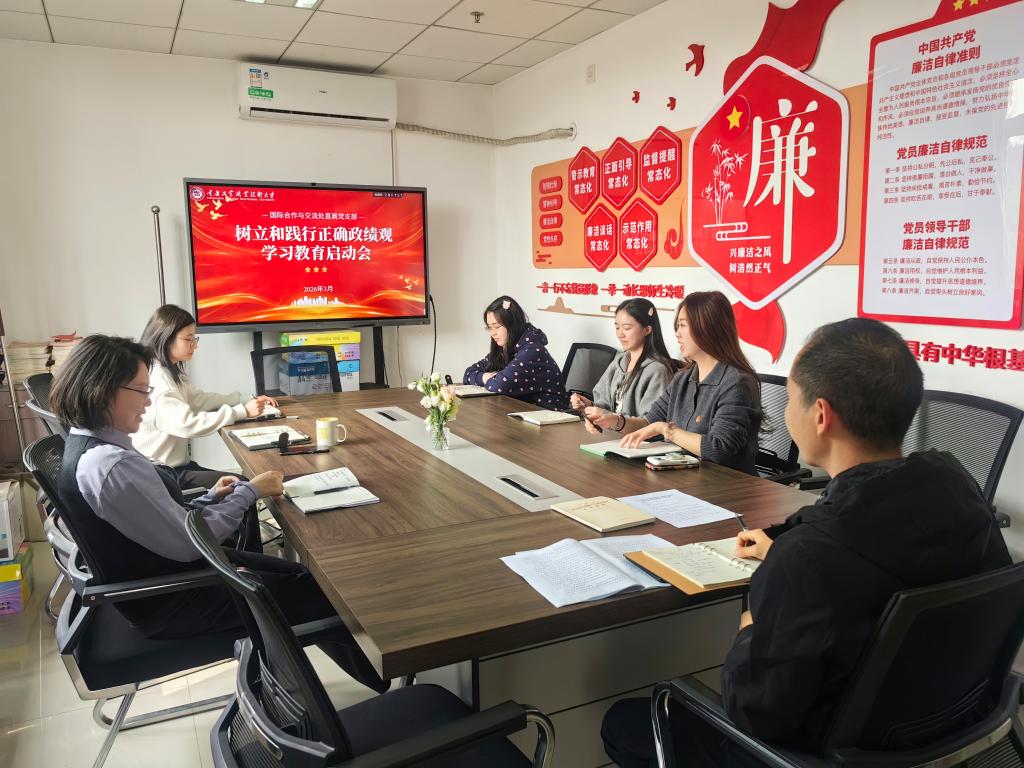 为深入学习贯彻习近平总书记关于树立和践行正确政绩观的重要讲话和重要指示精神,全面落实学校党委工作要求。3月13日下午,国际合作与交流处直属党支部组织召开树立和践行正确政绩观学习教育启动会。会议由支部书记张晋源主持,支部全体党员参加会议。